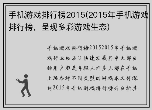 世界之外 - 探索游戏的无限可能 引言随着技术的不断进步,游戏正在以惊人的速度发展。无论是电子游戏还是桌面游戏,都可以带我们进入一个完全不同的世界,让我们探索自己从未体验过的东西。游戏的世界之外就是这...